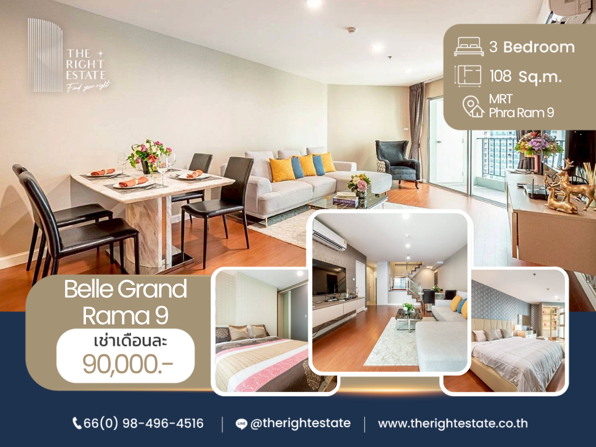🌿 Belle Grand Rama 9 🌿 Nice room nice decoration 🛏 3 Bed 3 Bath - 108 sq.m, price negotiable!!! close to MRT Rama 9